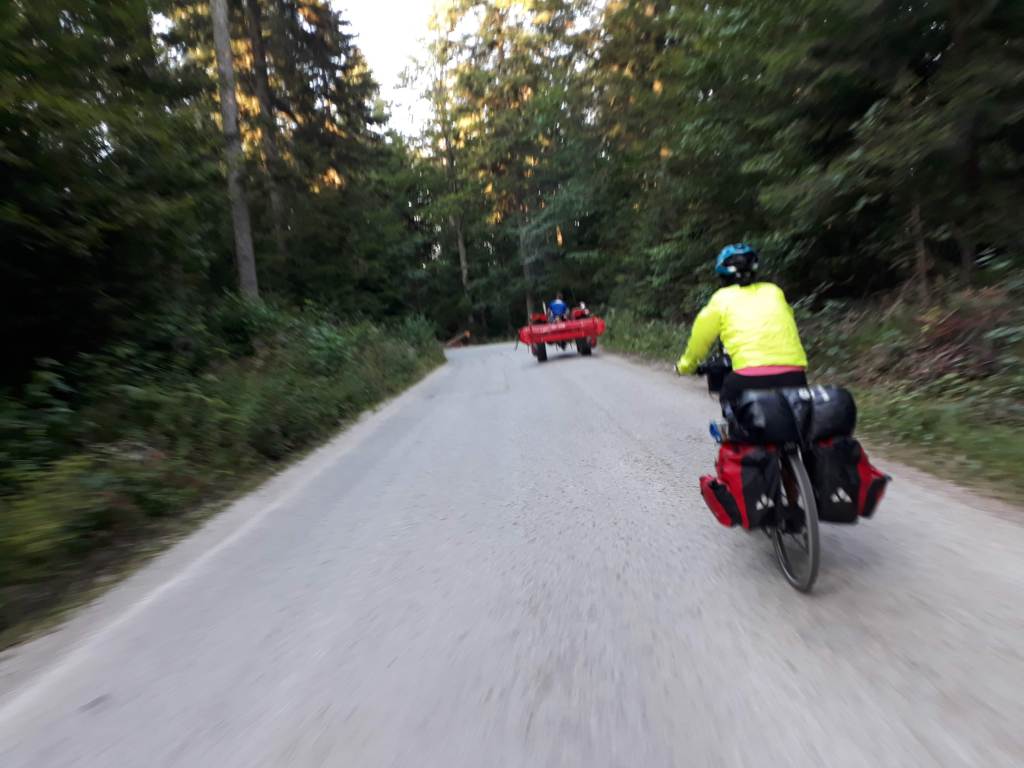 C’è un Warmshower che ci aspetta a Bajina Basta. Sono 20km di discesa. Dai andiamo che è tardi. Seguiamo il navigatore, anche se avevamo appena detto di non fidarci e verificare, visto l’inconveniente di oggi.Il posto continua ad essere bello, ma siamo fuori dalle grazie del gps e sta facendo buio. Poi chissà che animali ci sono da queste parti.È importante prendere decisioni quando si è lucidi e quindi non in salita!
