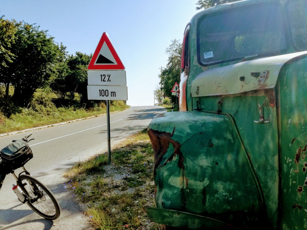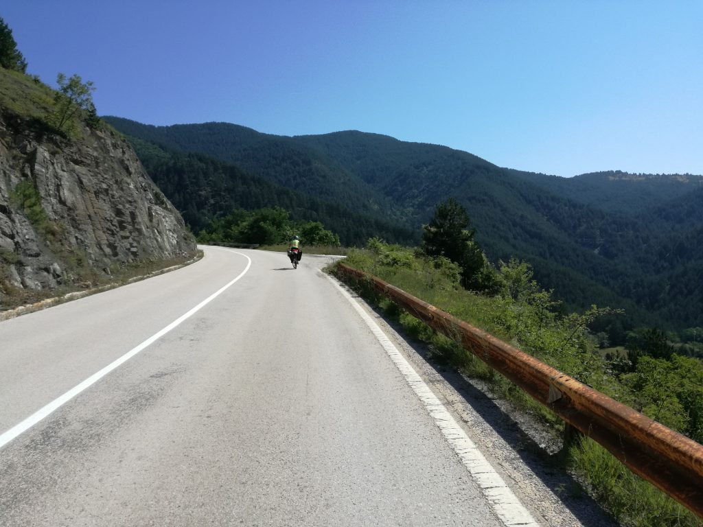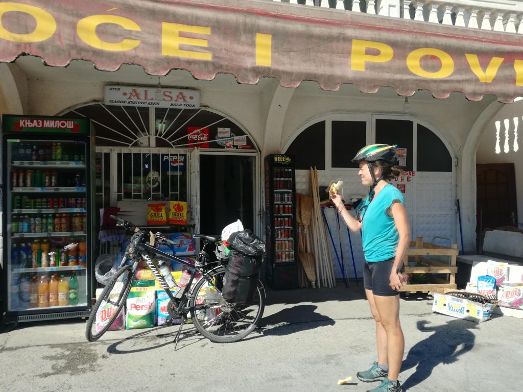 Macchine, tante macchine e camion e trattori e autobus. Caldo e salita. Ci concentriamo e pedaliamo. Finché, durante una sosta al benzinaio – ci piacciono i benzinai perché ci sono ombra e bagni – lei decide di tornare indietro per raggiungere Uzice, dove la signorina Warmshower, che ci avrebbe ospitate quella sera, aveva organizzato una festa. Cerca di convincermi. Sono irremovibile, mai andare contro il verdetto della monetina. Ci separiamo.