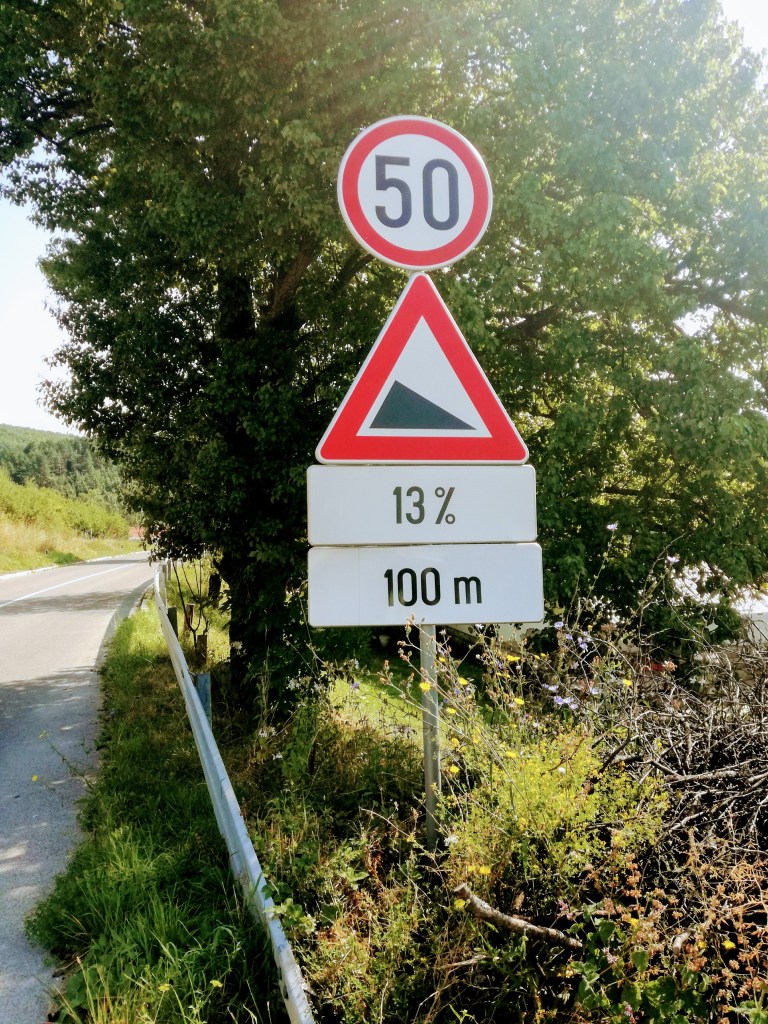 E queste percentuali di pendenza, quanto ancora hanno intenzione di aumentare? Fra l’altro, come si leggono? Indicano una salita o una discesa? Non importa, con pazienza e rampichino – la marcia più leggera che c’è – si scalano stradine all’apparenza verticali.