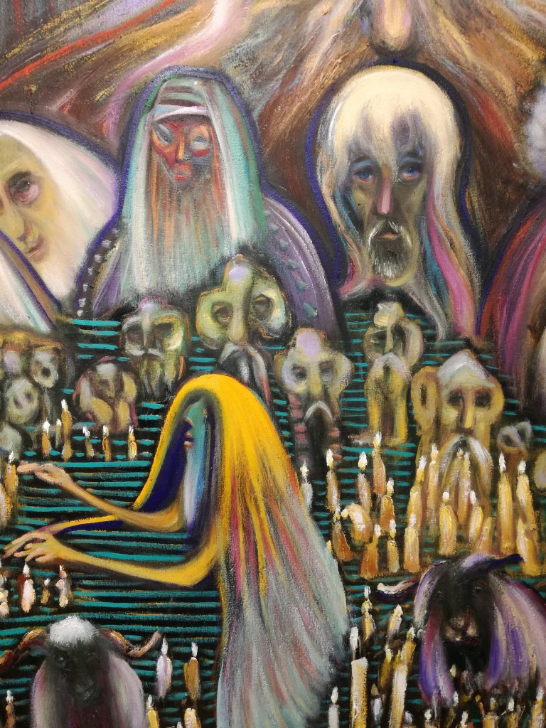 I concerti che mi piacciono di più, sono quelli sul palco piccolo al calar del sole. Mentre questi giovani polacchi ci intrattengono con le loro trombe, mi distraggo guardando una poco più che neonata gitana vestita in pomposo raso, rosa pallido, con la faccia da adulta, anzi da vecchia. Mentre esito nel fotografarla, un vecchietto ne approfitta per palparmi il culo nascosto dallo zaino. Con mossa felina gli tolgo la mano, lo guardo, mi sorride. Completamente senza denti.