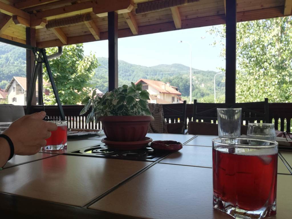 Fra i cartelli in cirillico e il navigatore che non ci localizza ci fermiamo imbambolate ad un incrocio, fino a che un signore appostato in finestra, viene in nostro soccorso. Parla incredibilmente inglese. Come un serbo ma con accento americano. Ci sediamo nella sua veranda bevendo succo di ribes fatto in casa.