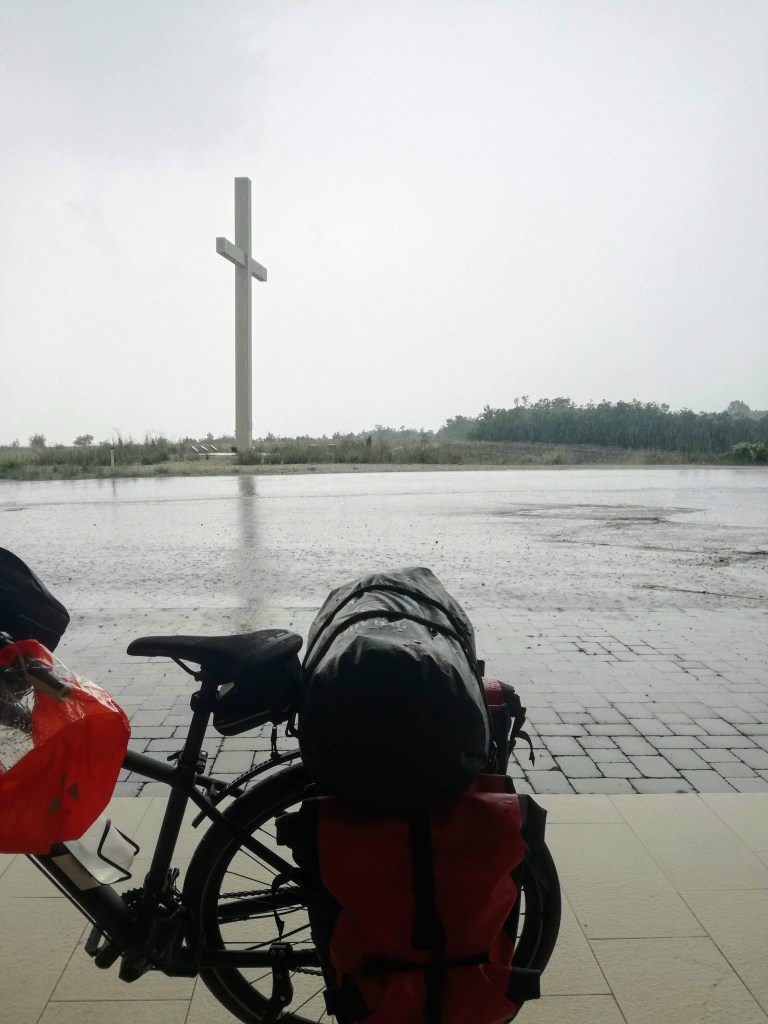 Con i pesci nelle scarpe e la pioggia nelle ossa spingo forte sui pedali per riscaldarmi un po’ ed anticipare i fulmini. Non ascolto le paure della mente e mi godo questo straordinario paesaggio collinare senza nemmeno un riparo. Quando mi capiterà di nuovo di vivere un’esperienza così, rimango vigile e presente.