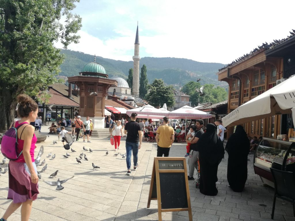 La guida ci dice che tutte le donne con il velo che vediamo in giro sono turiste provenienti dai paesi arabi, pochissime bosniacche indossano il velo e solo per coprire il capo. Mai il volto.