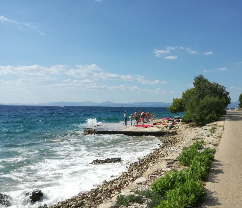 Le spiagge spesso sono fatte di comodo cemento, questo me lo ricordavo bene. È uno dei motivi che ci ha fatto scappare dalla Croazia, alla volta del Trentino, quando avevo circa 12 anni ed ero in vacanza con i miei zii e cugini.