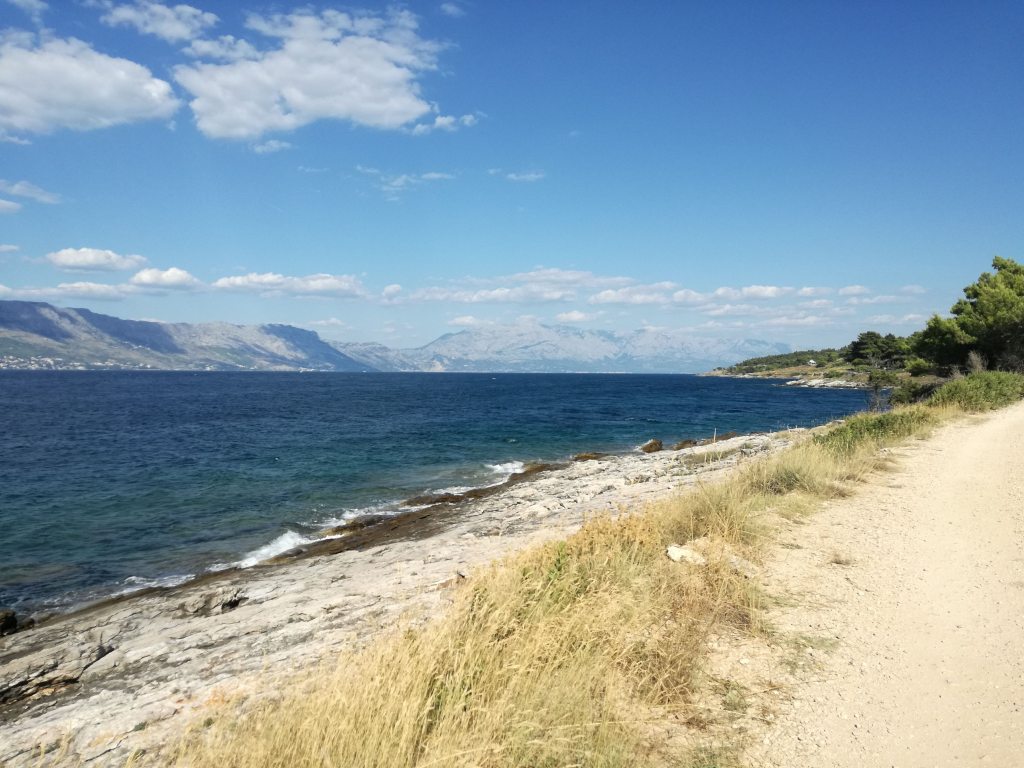 Si parte in pianura col fresco. Canyon pacifico e umido consigliato da un ciclista statunitense incontrato a Brac. Ha iniziato a girare in bici quattro anni fa, lo scorso anno però si è stabilito sull’isola e per il momento non ha intenzione di muoversi.