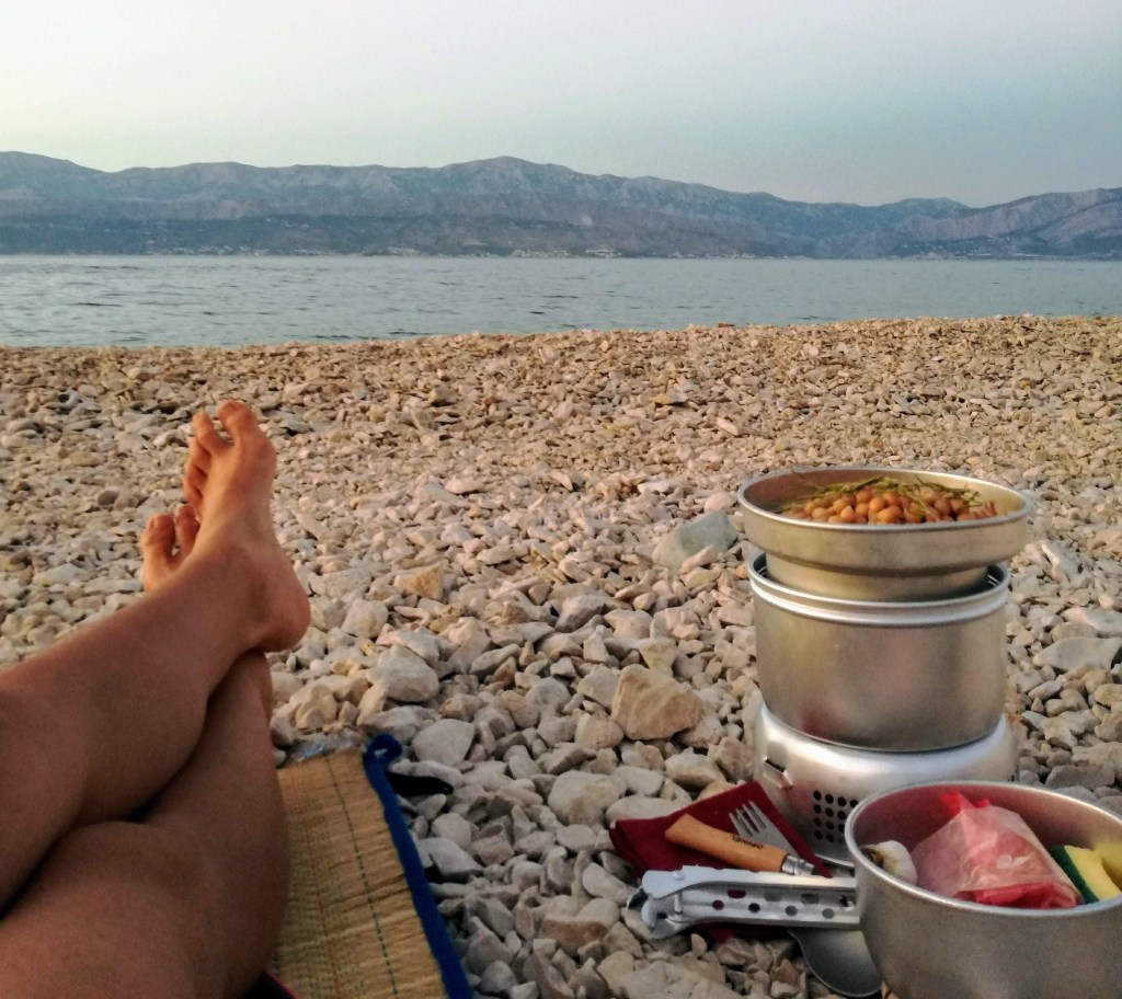 Ho fatto bene a portarmi il fornello, quello svedese, leggero e antivento, che poi fra l’altro non è nemmeno mio. Questa cenetta in giardino a base di ceci alla paprica affumicata e rosmarino è ottima.
