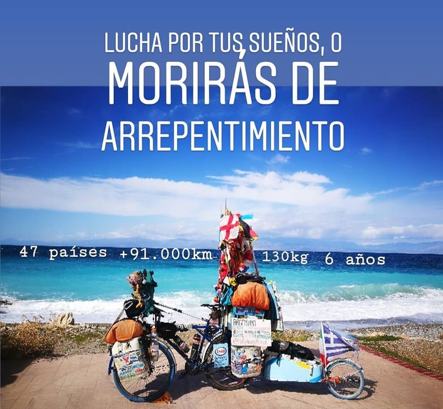No, non è un barbone né un folle, chissà, forse un pochino folle lo è, ma nell’accezione positiva del temine. Sono convinta che un pizzico di consapevole follia ci aiuti a vivere con più gusto e spessore. Serve coraggio e leggerezza. Per incoraggiarci ad osare, su ogni ‘biglietto da visita’, impressa sulle foto dei suoi viaggi, appare il suo motto: “cuando se quiere se puede, lo imposibile solo cuesta un poco màs”. È un po’ come dire “volere è potere” e per raggiungere ciò che ci sembra impossibile basta solamente un piccolo sforzo in più! Come dargli torto…