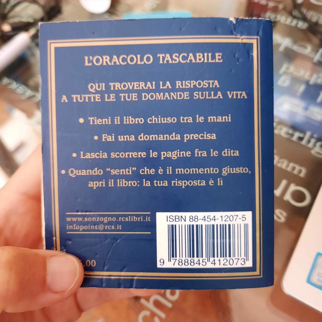 Nooo ancora?! Mi si deve essere incagliato l’oracolo, come è possibile ricevere per ben due volte le stesse risposte che quindi in totale sono quattro. Questa non è valida, cerco di disincagliare il prezioso libretto e scelgo un’altra risposta.