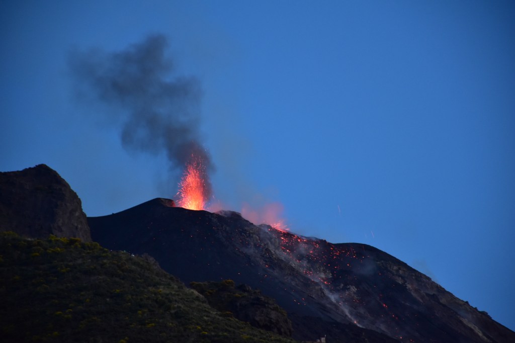 E poi c’è stata l’esplosione. Poco meno di un anno fa all’alba, un botto assurdo ci sveglia di soprassalto. Era lui, anzi “Iddu”, come lo chiamano qui, che tirava fuori instancabilmente lapilli incadescenti che si spargevano qua e là creando dei piccoli, e per fortuna momentanei, incendi. Come in un film apocalittico, al rallentatore fuoriesce dal cratere un’ enorme nuvola bianca, di un candido innocente che lentissimamente si propaga e una immensa colonna di sabbia nera che si dirige, sempre alla moviola, verso il mare. È stato uno spettacolo maestoso, la potenza della natura che si manifesta senza preavviso offrendoci bellezza e terrore.